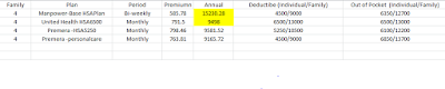 Manpower 用的是 United HealthCare 保險公司,我特地找了華盛頓州的 United HealthCare 及 Premera 來和 Manpower 來進行比較,用一些重要指標來看看到底真的是 Manpower 保費較貴呢?